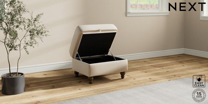 7.2.10 Ashford Highback Storage Footstool Tweedy Blend Easy Clean Oyster Low Turned - Mid | Made Click here to use our website with more accessibility support, for example screen readers