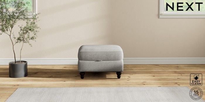 7.2.10 Ashford Highback Storage Footstool Woven Chenille Easy Clean Light Grey Low Turned - Dark | Made Click here to use our website with more accessibility support, for example screen readers