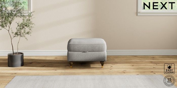 7.2.10 Ashford Highback Storage Footstool Woven Chenille Easy Clean Light Grey Modern Turned Metal Cap - Mid | Made Click here to use our website with more accessibility support, for example screen readers