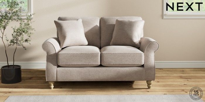 7.2.10 Ashford Relaxed Sit 2 Seater Small Sofa Boucle Chenille Light Natural Low Turned - Light | Made Click here to use our website with more accessibility support, for example screen readers