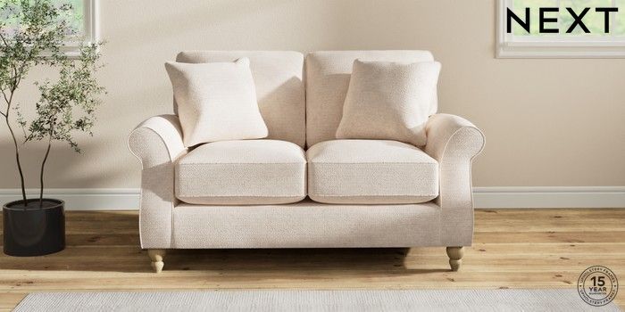 7.2.10 Ashford Relaxed Sit 2 Seater Small Sofa Boucle Chenille Oyster Low Turned - Light | Made Click here to use our website with more accessibility support, for example screen readers