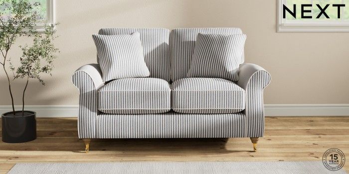 7.2.10 Ashford Relaxed Sit 2 Seater Small Sofa Chenille Stripe Slate Blue Castor - Light | Made Click here to use our website with more accessibility support, for example screen readers