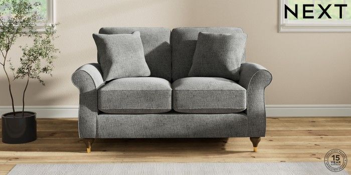 7.2.10 Ashford Relaxed Sit 2 Seater Small Sofa Chunky Chenille Dark Grey Modern Turned Metal Cap - Mid | Made Click here to use our website with more accessibility support, for example screen readers