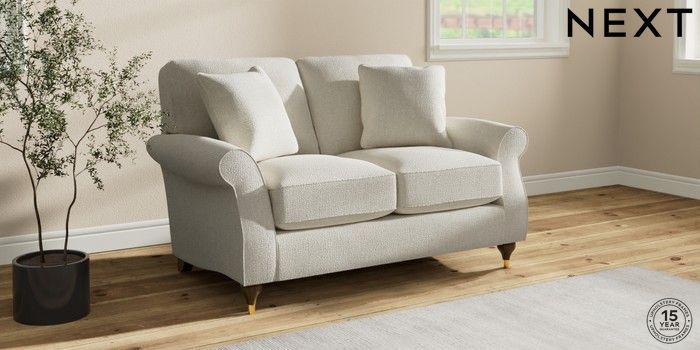 7.2.10 Ashford Relaxed Sit 2 Seater Small Sofa Chunky Texture Oyster Modern Turned Metal Cap - Mid | Made Click here to use our website with more accessibility support, for example screen readers