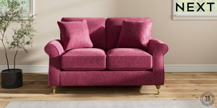 7.2.10 Ashford Relaxed Sit 2 Seater Small Sofa Cotswold Chenille Dark Raspberry Pink Castor - Light | Made Click here to use our website with more accessibility support, for example screen readers