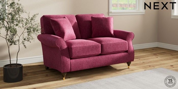 7.2.10 Ashford Relaxed Sit 2 Seater Small Sofa Cotswold Chenille Dark Raspberry Pink Modern Turned Metal Cap - Mid | Made Click here to use our website with more accessibility support, for example screen readers