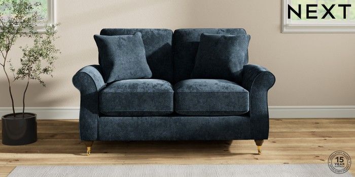 7.2.10 Ashford Relaxed Sit 2 Seater Small Sofa Distressed Velour Midnight Blue Castor - Mid | Made Click here to use our website with more accessibility support, for example screen readers