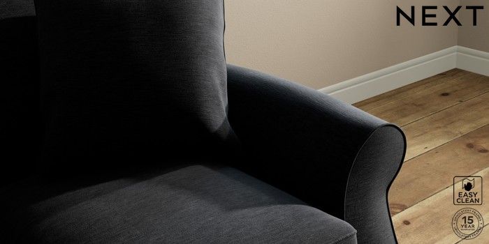 7.2.10 Ashford Relaxed Sit 2 Seater Small Sofa Fine Chenille Easy Clean Black Modern Turned Metal Cap - Mid | Made Click here to use our website with more accessibility support, for example screen readers