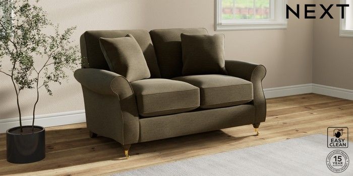 7.2.10 Ashford Relaxed Sit 2 Seater Small Sofa Fine Chenille Easy Clean Dark Moss Green Castor - Mid | Made Click here to use our website with more accessibility support, for example screen readers