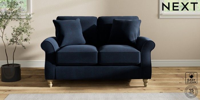 7.2.10 Ashford Relaxed Sit 2 Seater Small Sofa Fine Chenille Easy Clean Dark Navy Blue Low Turned - Light | Made Click here to use our website with more accessibility support, for example screen readers
