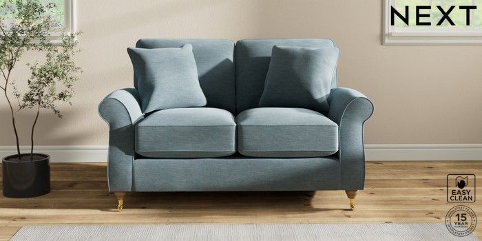 7.2.10 Ashford Relaxed Sit 2 Seater Small Sofa Fine Chenille Easy Clean Mid Blue Castor - Light | Made Click here to use our website with more accessibility support, for example screen readers