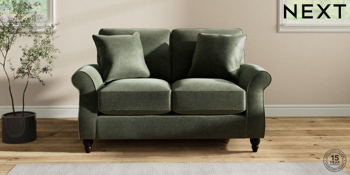 7.2.10 Ashford Relaxed Sit 2 Seater Small Sofa Luxe Chenille Mid Green Low Turned - Dark | Made Click here to use our website with more accessibility support, for example screen readers