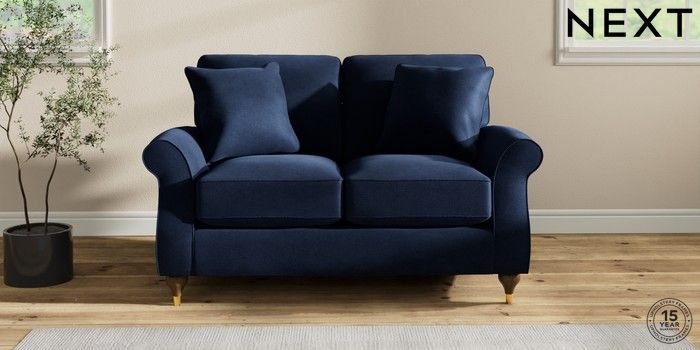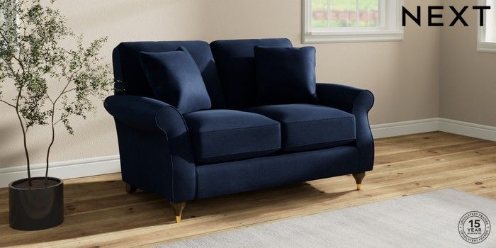 7.2.10 Ashford Relaxed Sit 2 Seater Small Sofa Luxe Chenille Navy Blue Modern Turned Metal Cap - Mid | Made Click here to use our website with more accessibility support, for example screen readers