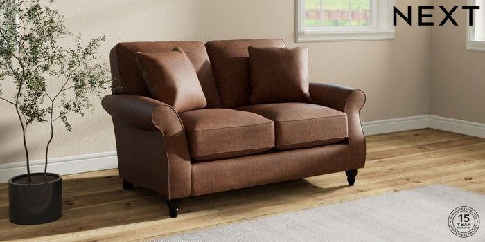 7.2.10 Ashford Relaxed Sit 2 Seater Small Sofa Monza Faux Leather Easy Clean Chestnut Brown Low Turned - Dark | Made Click here to use our website with more accessibility support, for example screen readers