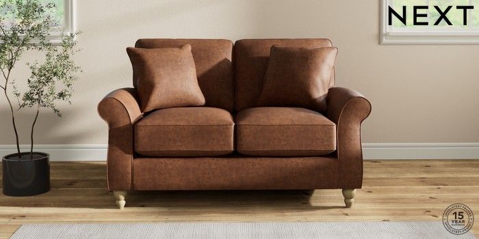 7.2.10 Ashford Relaxed Sit 2 Seater Small Sofa Monza Faux Leather Easy Clean Chestnut Brown Low Turned - Light | Made Click here to use our website with more accessibility support, for example screen readers