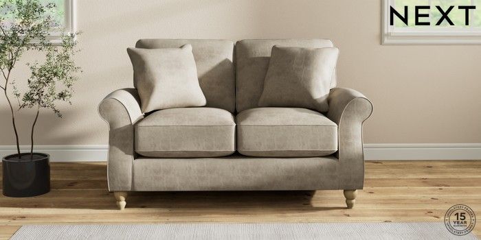 7.2.10 Ashford Relaxed Sit 2 Seater Small Sofa Monza Faux Leather Easy Clean Mink Brown Low Turned - Light | Made Click here to use our website with more accessibility support, for example screen readers