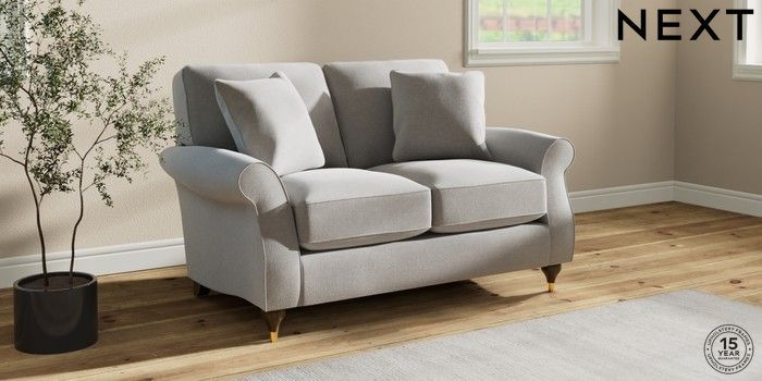 7.2.10 Ashford Relaxed Sit 2 Seater Small Sofa Natural Mix Light Grey Modern Turned Metal Cap - Mid | Made Click here to use our website with more accessibility support, for example screen readers