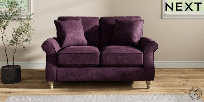 7.2.10 Ashford Relaxed Sit 2 Seater Small Sofa Plush Chenille Dark Plum Purple Low Turned - Light | Made Click here to use our website with more accessibility support, for example screen readers