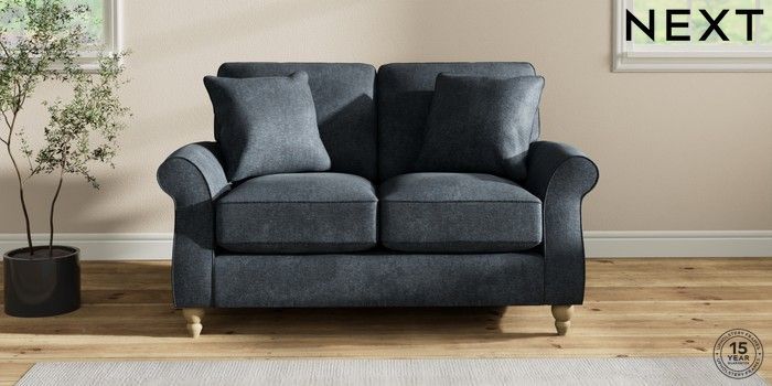 7.2.10 Ashford Relaxed Sit 2 Seater Small Sofa Plush Chenille Slate Blue Low Turned - Light | Made Click here to use our website with more accessibility support, for example screen readers