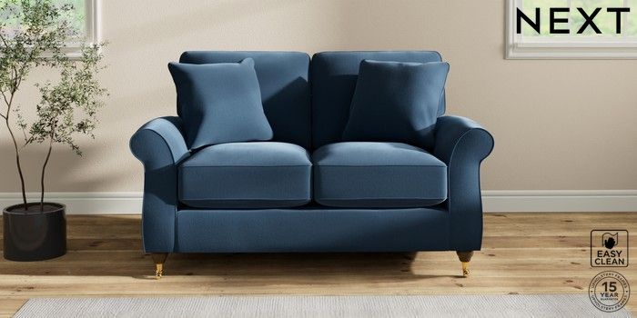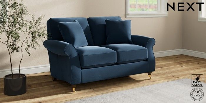 7.2.10 Ashford Relaxed Sit 2 Seater Small Sofa Plush Velvet Easy Clean Airforce Blue Castor - Mid | Made Click here to use our website with more accessibility support, for example screen readers