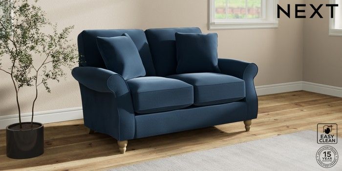 7.2.10 Ashford Relaxed Sit 2 Seater Small Sofa Plush Velvet Easy Clean Airforce Blue Low Turned - Light | Made Click here to use our website with more accessibility support, for example screen readers