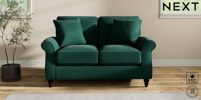 7.2.10 Ashford Relaxed Sit 2 Seater Small Sofa Plush Velvet Easy Clean Bottle Green Low Turned - Dark | Made Click here to use our website with more accessibility support, for example screen readers