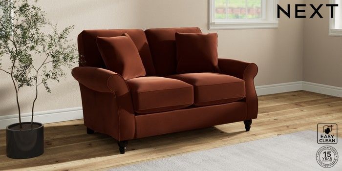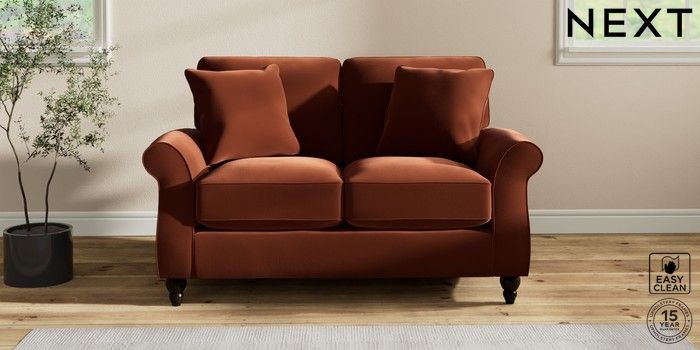 7.2.10 Ashford Relaxed Sit 2 Seater Small Sofa Plush Velvet Easy Clean Ginger Orange Low Turned - Dark | Made Click here to use our website with more accessibility support, for example screen readers