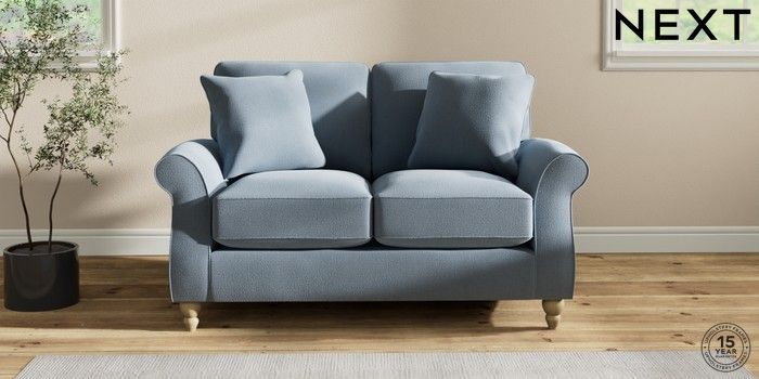 7.2.10 Ashford Relaxed Sit 2 Seater Small Sofa Relaxed Linen Look Mid Blue Low Turned - Light | Made Click here to use our website with more accessibility support, for example screen readers