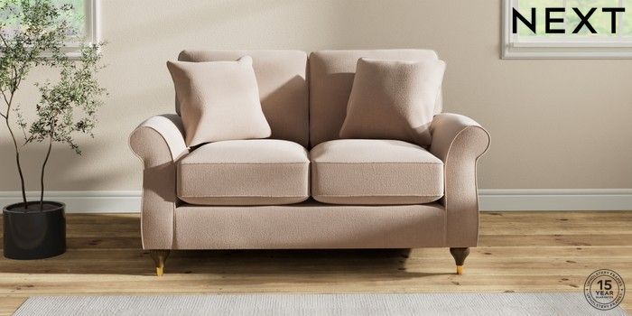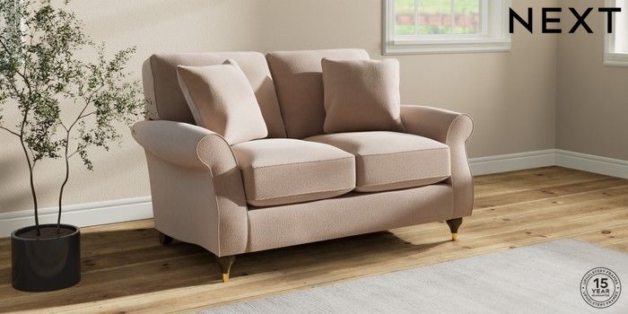 7.2.10 Ashford Relaxed Sit 2 Seater Small Sofa Relaxed Linen Look Mid Natural Modern Turned Metal Cap - Mid | Made Click here to use our website with more accessibility support, for example screen readers