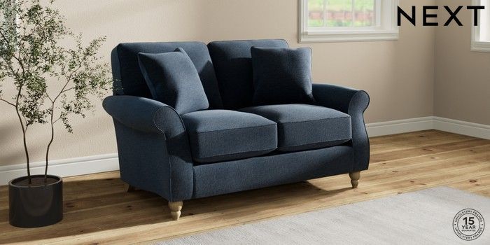 7.2.10 Ashford Relaxed Sit 2 Seater Small Sofa Ripple Chenille Dark Blue Low Turned - Light | Made Click here to use our website with more accessibility support, for example screen readers