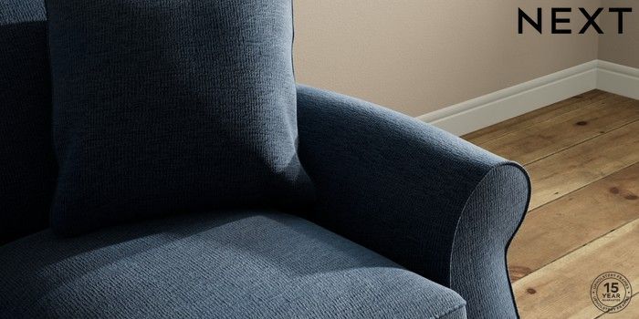 7.2.10 Ashford Relaxed Sit 2 Seater Small Sofa Ripple Chenille Dark Blue Modern Turned Metal Cap - Mid | Made Click here to use our website with more accessibility support, for example screen readers