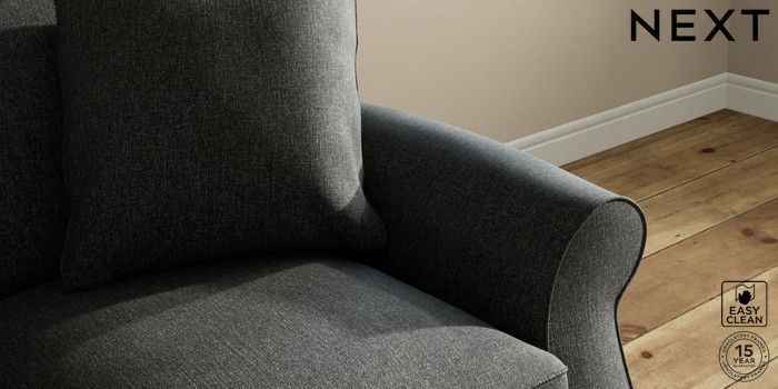 7.2.10 Ashford Relaxed Sit 2 Seater Small Sofa Tweedy Blend Easy Clean Charcoal Grey Modern Turned Metal Cap - Mid | Made Click here to use our website with more accessibility support, for example screen readers