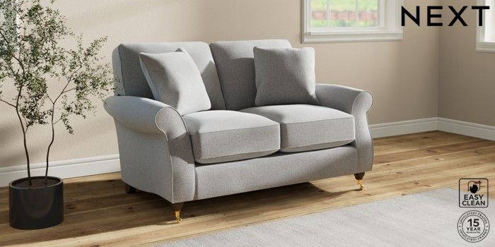 7.2.10 Ashford Relaxed Sit 2 Seater Small Sofa Tweedy Blend Easy Clean Light Silver Grey Castor - Mid | Made Click here to use our website with more accessibility support, for example screen readers