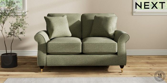 7.2.10 Ashford Relaxed Sit 2 Seater Small Sofa Tweedy Chenille Mid Moss Green Castor - Dark | Made Click here to use our website with more accessibility support, for example screen readers