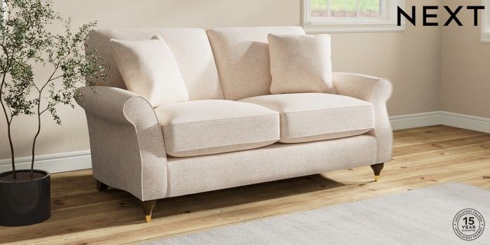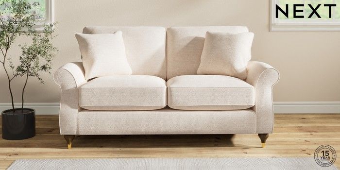 7.2.10 Ashford Relaxed Sit 2 Seater Sofa Boucle Chenille Oyster Modern Turned Metal Cap - Mid | Made Click here to use our website with more accessibility support, for example screen readers