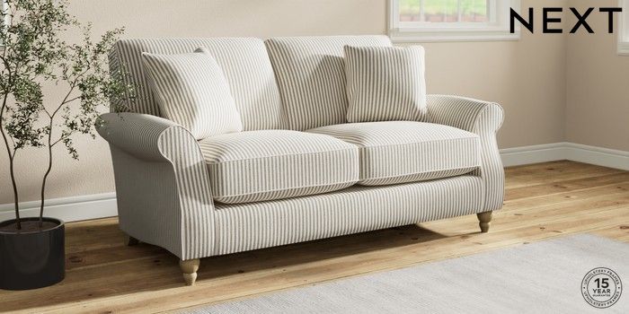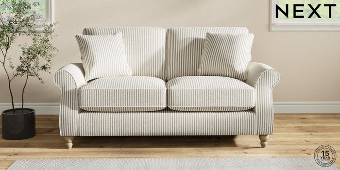 7.2.10 Ashford Relaxed Sit 2 Seater Sofa Chenille Stripe Moss Green Low Turned - Light | Made Click here to use our website with more accessibility support, for example screen readers