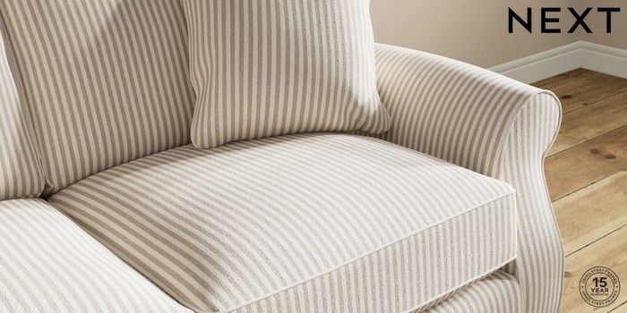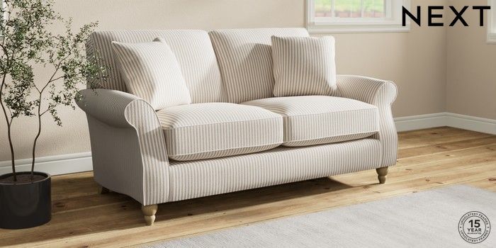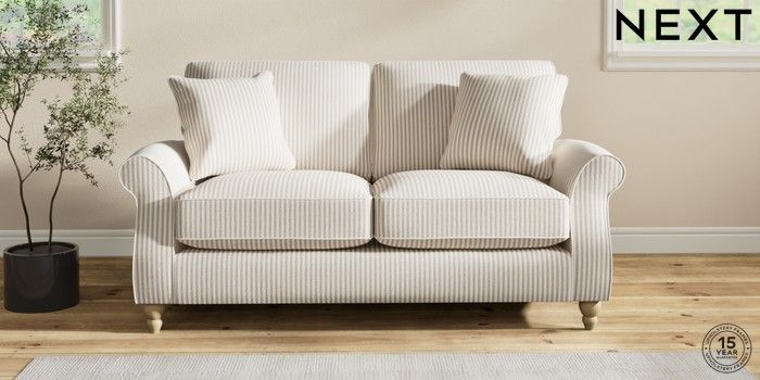 7.2.10 Ashford Relaxed Sit 2 Seater Sofa Chenille Stripe Natural Low Turned - Light | Made Click here to use our website with more accessibility support, for example screen readers