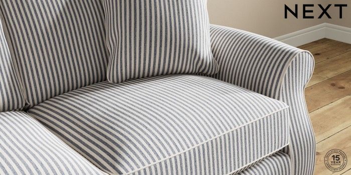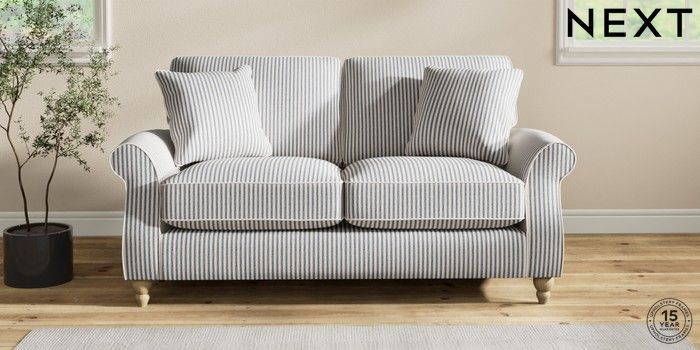 7.2.10 Ashford Relaxed Sit 2 Seater Sofa Chenille Stripe Slate Blue Low Turned - Light | Made Click here to use our website with more accessibility support, for example screen readers