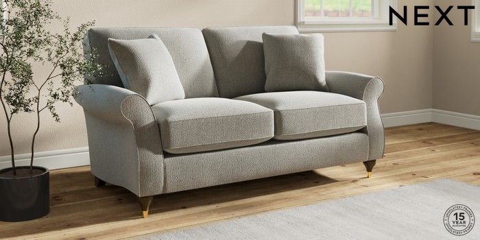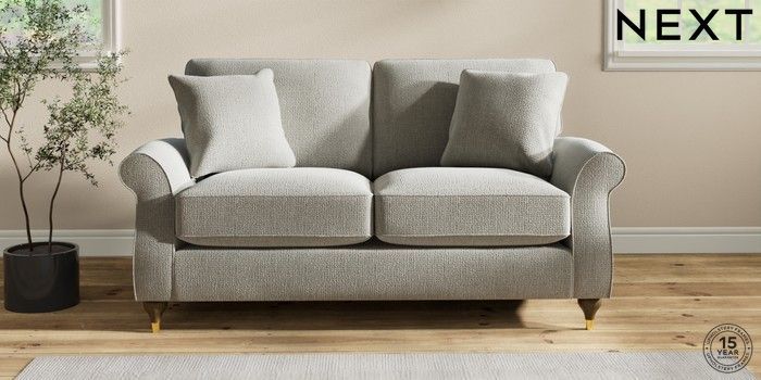 7.2.10 Ashford Relaxed Sit 2 Seater Sofa Chunky Texture Dove Modern Turned Metal Cap - Mid | Made Click here to use our website with more accessibility support, for example screen readers