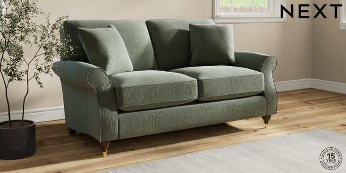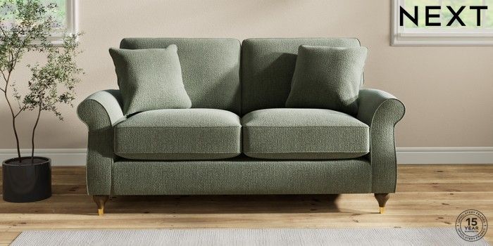 7.2.10 Ashford Relaxed Sit 2 Seater Sofa Chunky Texture Mid Forest Green Modern Turned Metal Cap - Mid | Made Click here to use our website with more accessibility support, for example screen readers