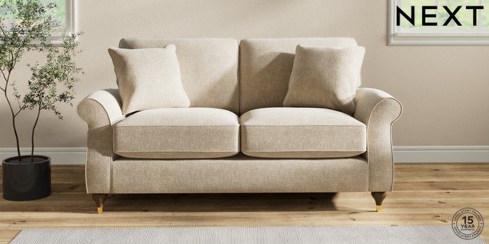 7.2.10 Ashford Relaxed Sit 2 Seater Sofa Chunky Weave Cream Modern Turned Metal Cap - Mid | Made Click here to use our website with more accessibility support, for example screen readers