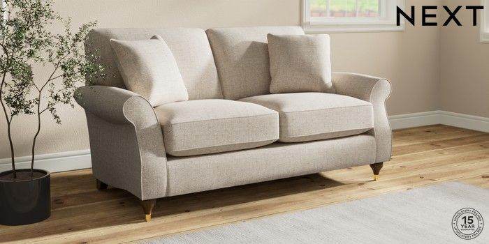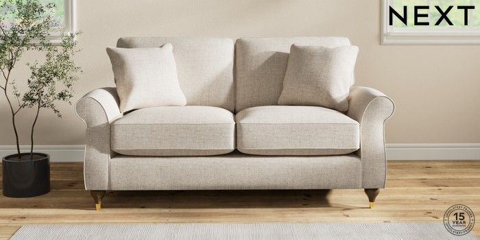 7.2.10 Ashford Relaxed Sit 2 Seater Sofa Chunky Weave Mid Natural Modern Turned Metal Cap - Mid | Made Click here to use our website with more accessibility support, for example screen readers