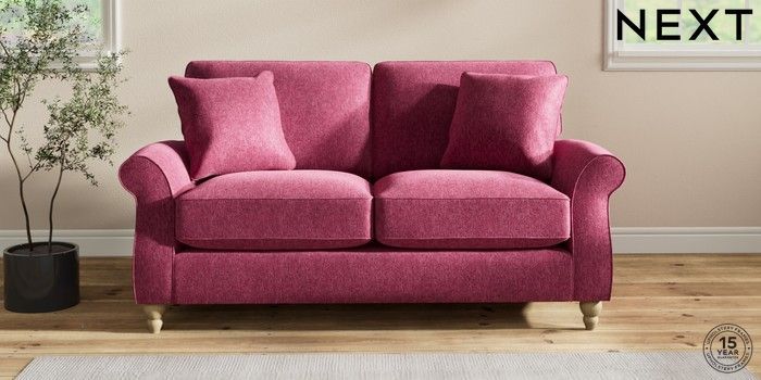 7.2.10 Ashford Relaxed Sit 2 Seater Sofa Cotswold Chenille Dark Raspberry Pink Low Turned - Light | Made Click here to use our website with more accessibility support, for example screen readers
