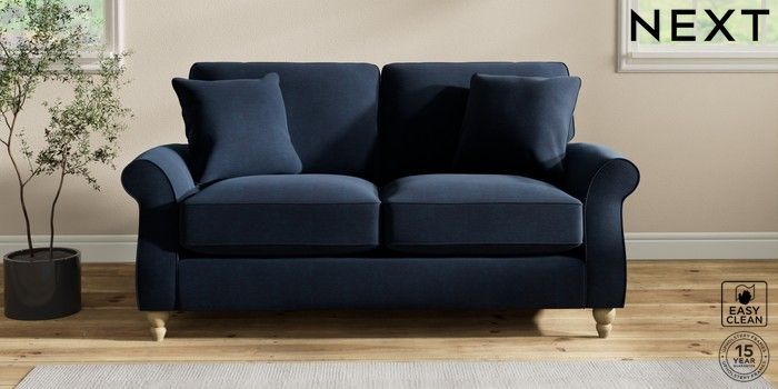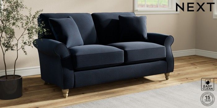 7.2.10 Ashford Relaxed Sit 2 Seater Sofa Fine Chenille Easy Clean Dark Navy Blue Low Turned - Light | Made Click here to use our website with more accessibility support, for example screen readers