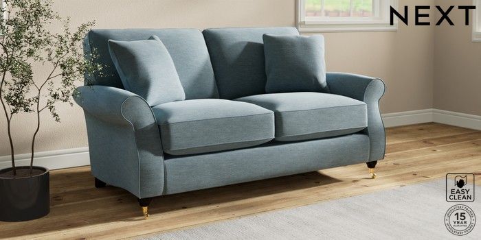 7.2.10 Ashford Relaxed Sit 2 Seater Sofa Fine Chenille Easy Clean Mid Blue Castor - Dark | Made Click here to use our website with more accessibility support, for example screen readers