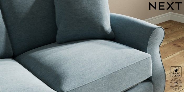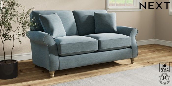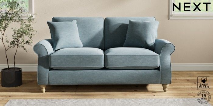 7.2.10 Ashford Relaxed Sit 2 Seater Sofa Fine Chenille Easy Clean Mid Blue Low Turned - Light | Made Click here to use our website with more accessibility support, for example screen readers