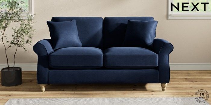 7.2.10 Ashford Relaxed Sit 2 Seater Sofa Luxe Chenille Navy Blue Low Turned - Light | Made Click here to use our website with more accessibility support, for example screen readers