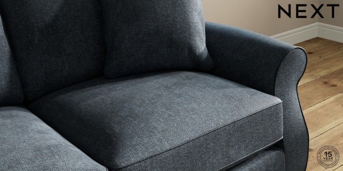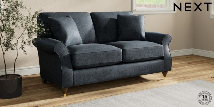 7.2.10 Ashford Relaxed Sit 2 Seater Sofa Plush Chenille Slate Blue Modern Turned Metal Cap - Mid | Made Click here to use our website with more accessibility support, for example screen readers