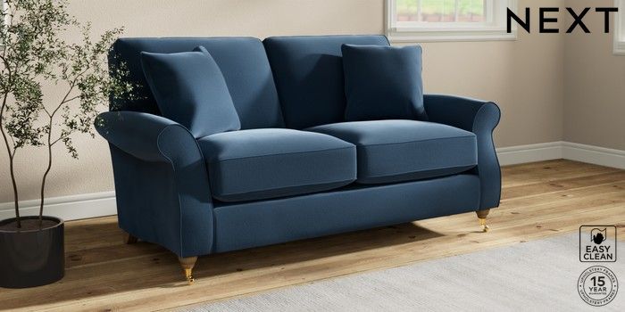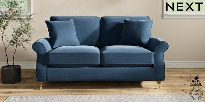 7.2.10 Ashford Relaxed Sit 2 Seater Sofa Plush Velvet Easy Clean Airforce Blue Castor - Light | Made Click here to use our website with more accessibility support, for example screen readers