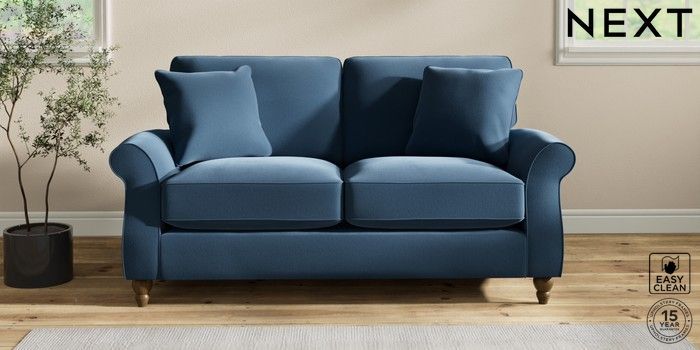 7.2.10 Ashford Relaxed Sit 2 Seater Sofa Plush Velvet Easy Clean Airforce Blue Low Turned - Mid | Made Click here to use our website with more accessibility support, for example screen readers